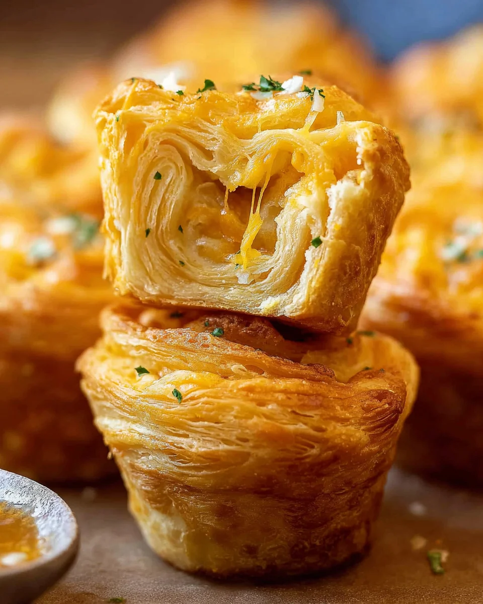 These Cheesy Garlic Cruffins remind me a bit of those classic cheesy garlic biscuits we all love, but the texture here is a little different—and honestly, a whole lot more fun! They come out with a nice crispy outside and a soft, tender inside that just melts in your mouth. This recipe is fantastic on its own, but the garlic butter glaze brushed on top? That’s where the magic happens! Add these to your holiday spread and watch how quickly they disappear at your Christmas party or family gathering.