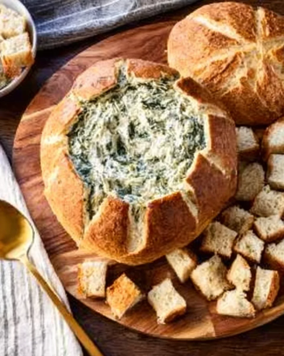 • How do I make the bread bowl? Choose a round, sturdy loaf like sourdough. Slice off the top, then use your hands or a spoon to hollow out the inside to create a cavity for the dip without breaking the crust.