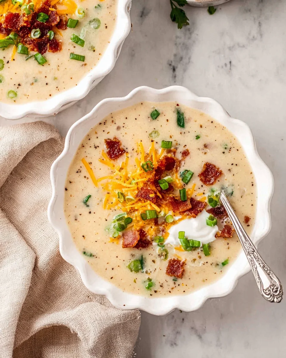 A creamy and cheesy crockpot potato soup loaded with tender potato chunks and savory bacon, perfect for a comforting meal that the slow cooker prepares with minimal effort.