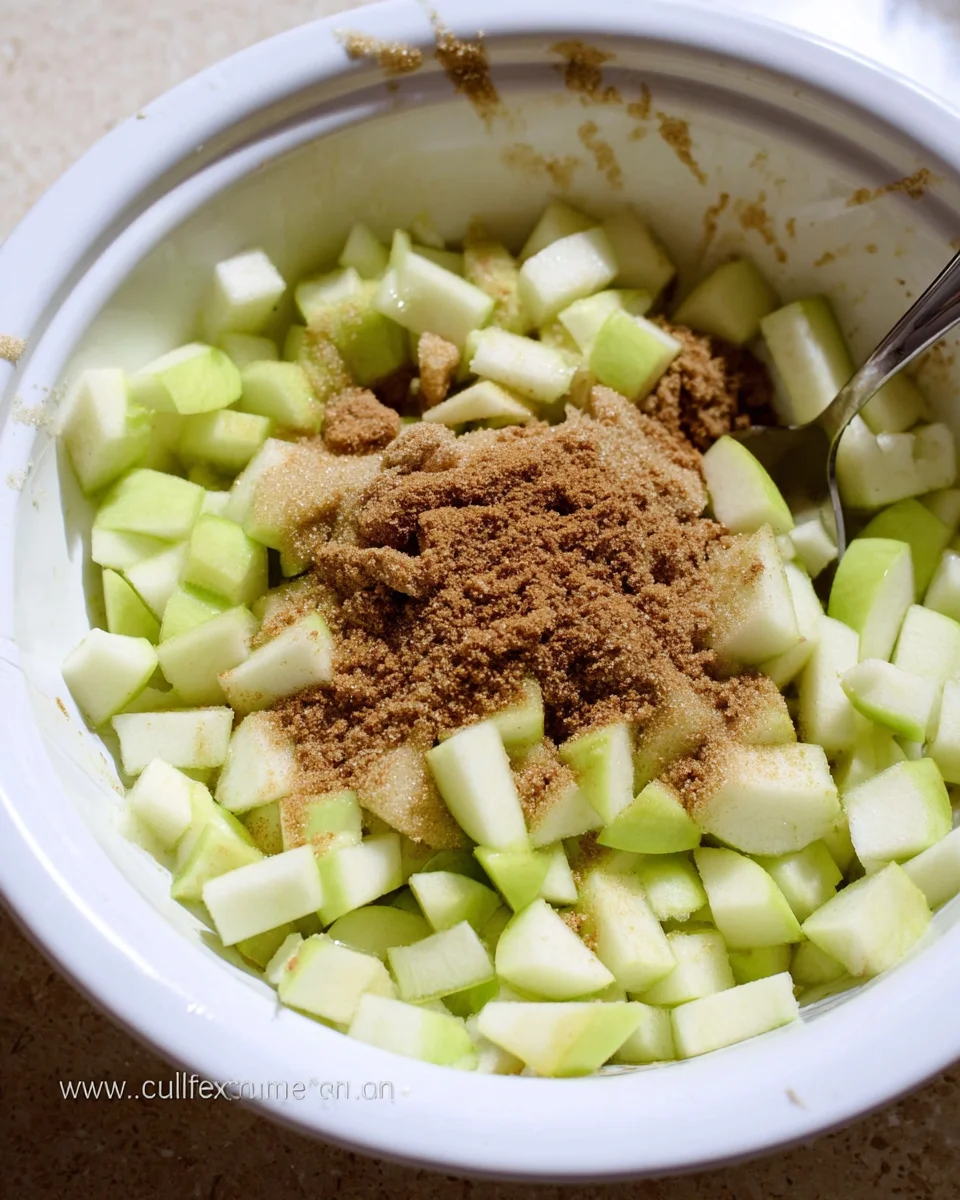 Start by dicing up your apples and giving them a good toss with fresh lemon juice. Then mix in brown sugar, melted butter, cinnamon, and just a pinch of salt for that perfect flavorful balance.