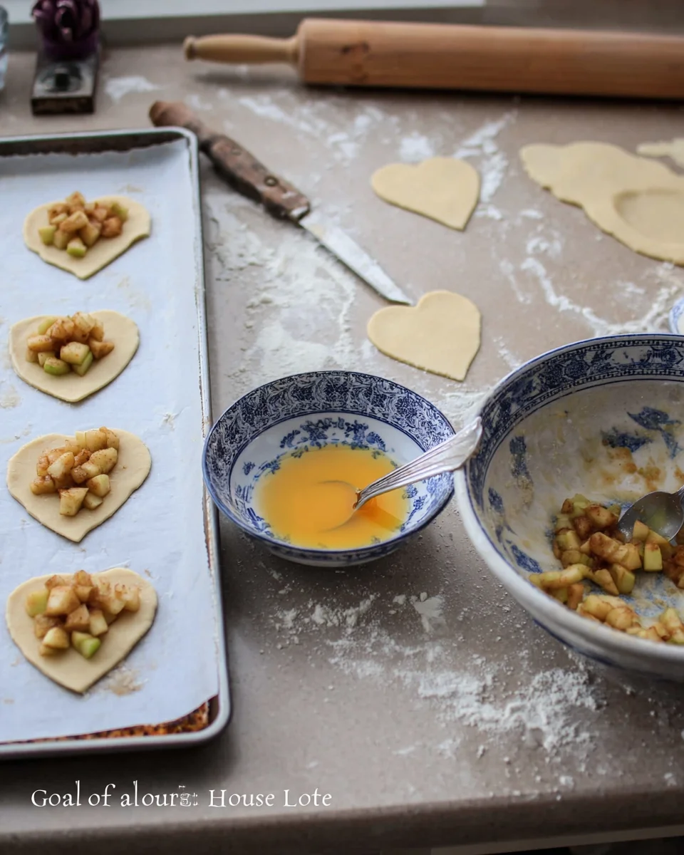 7. Fill each bottom heart with the apple mixture, leaving a 1/2 inch border around edges.